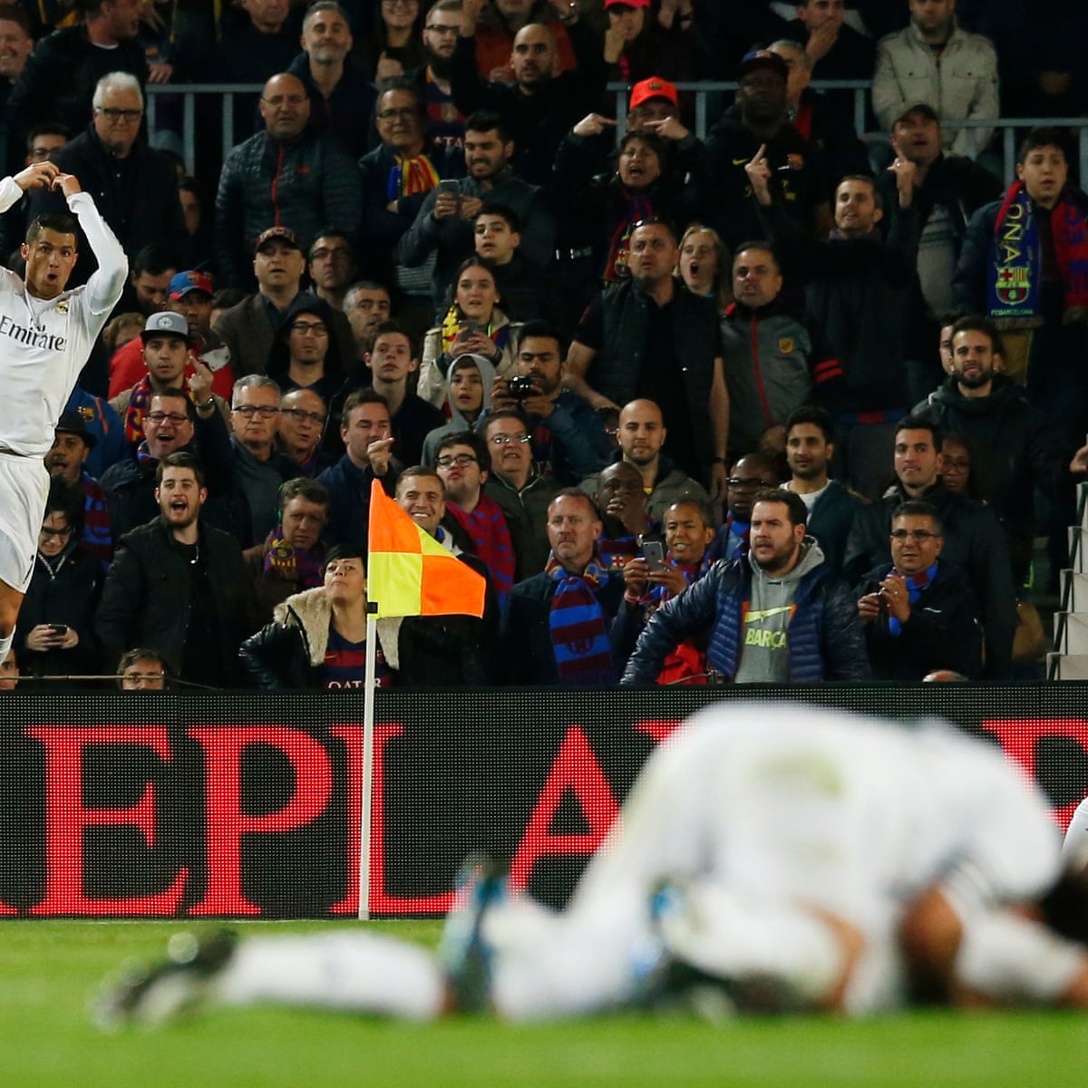 When his agent confirmed the deal Figo denied everything insisting Ill stay at Barcelona whether Pérez wins. Partido de Liga BBVA en el Camp Nou jornada 31 2 de abril a las 2030h. A last-gasp Sergio Ramos header secured a 1-1 draw for Real Madrid in El Clasico against Barcelona to maintain their.