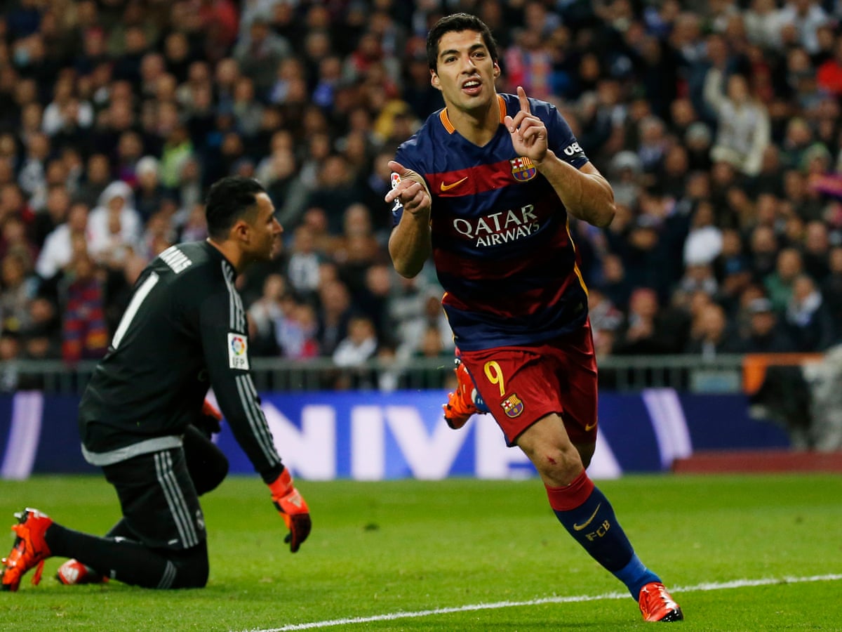 Barcelona vs Real Madrid. Luis Suárez Barcelona right footed shot from the centre of the box to the bottom left corner. It covered a period from 1 July 2016 to 30 June 2017.