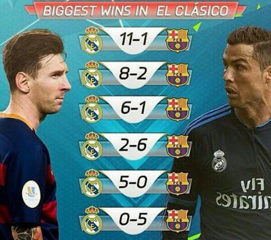 This is a list of all matches contested between the Spanish football clubs Barcelona and Real Madrid a fixture known as El Clásico. El Clásico fue para el Real Madrid que se vengó con una manita en el Bernabeu frente a su rival de toda la vida el BarcelonaFB. Entradas Stubhub Entradas Viagogo.