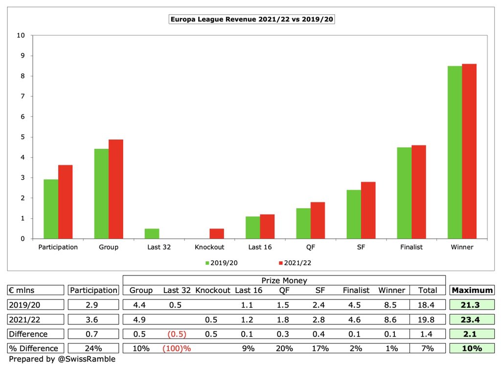 Swiss Ramble در توییتر The 2021 22 Europa League Prize Money Has Risen By 10 Over Current Cycle With The Highest Increase 24 In The Participation Fee But Only 1 More For The